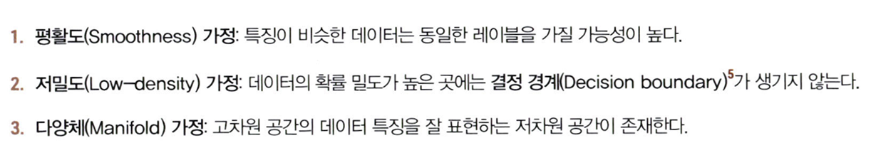 - 준지도 학습(Semi-supervised Learning): 레이블을 사용하는 지도 학습과 레이블을 사용하지 않는 비지도 학습의 중간에 있는 학습 방법
