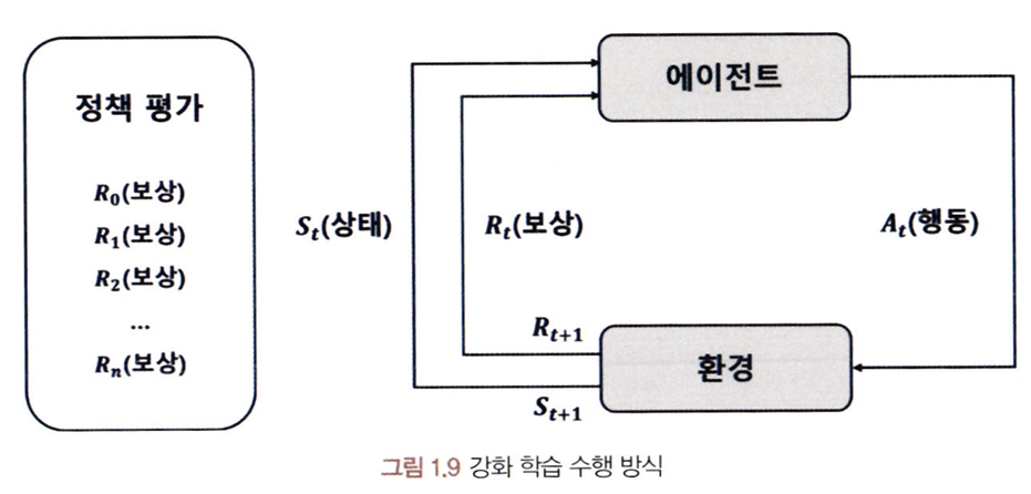 - 강화학습(Reinforcement Learning):어떤 행동을 수행했을 때 보상이 있다면 보상받았던 행동의 발생 빈도가 높아진다.