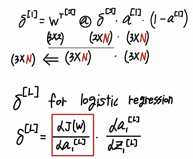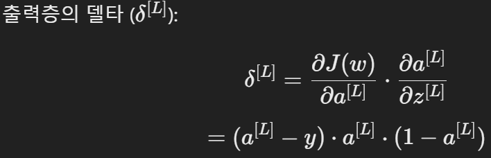 - 최종 출력층 δ
